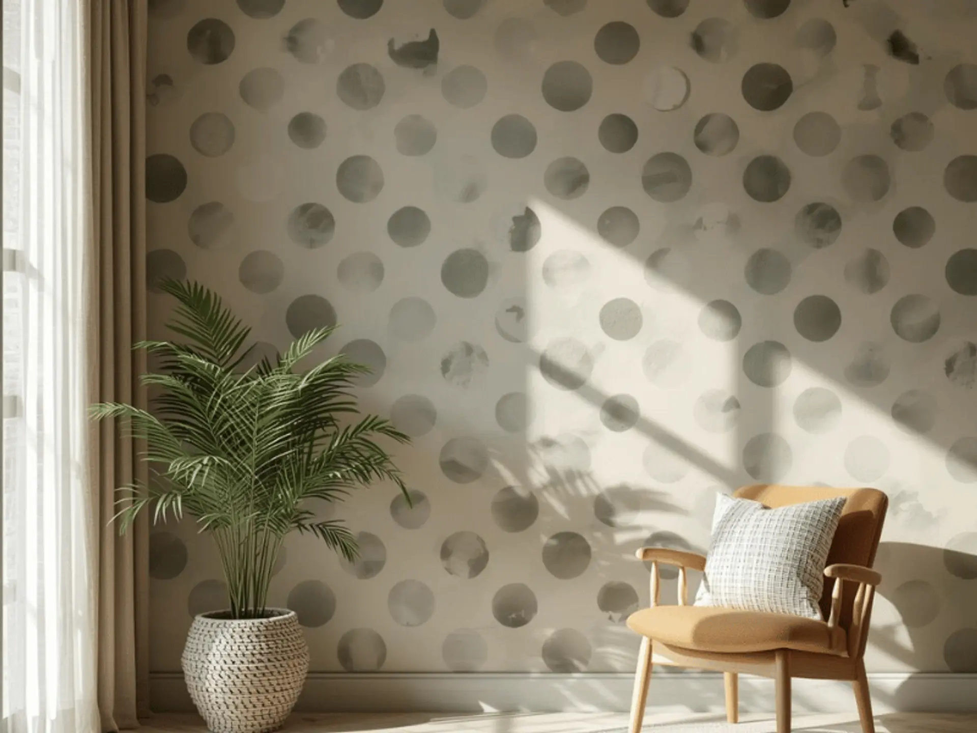 Polka dots bring energy to nurseries, craft rooms, and playful corners. This is a fun form of DIY painting because you can control size, spacing, and colour easily.