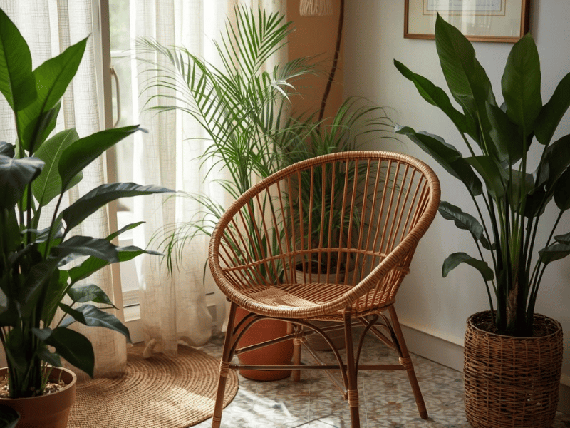 Lightweight and natural, rattan chairs work indoors or on balconies. One chair near a window becomes an easy reading spot with a side table and a throw. Add a washable cushion for daily comfort.