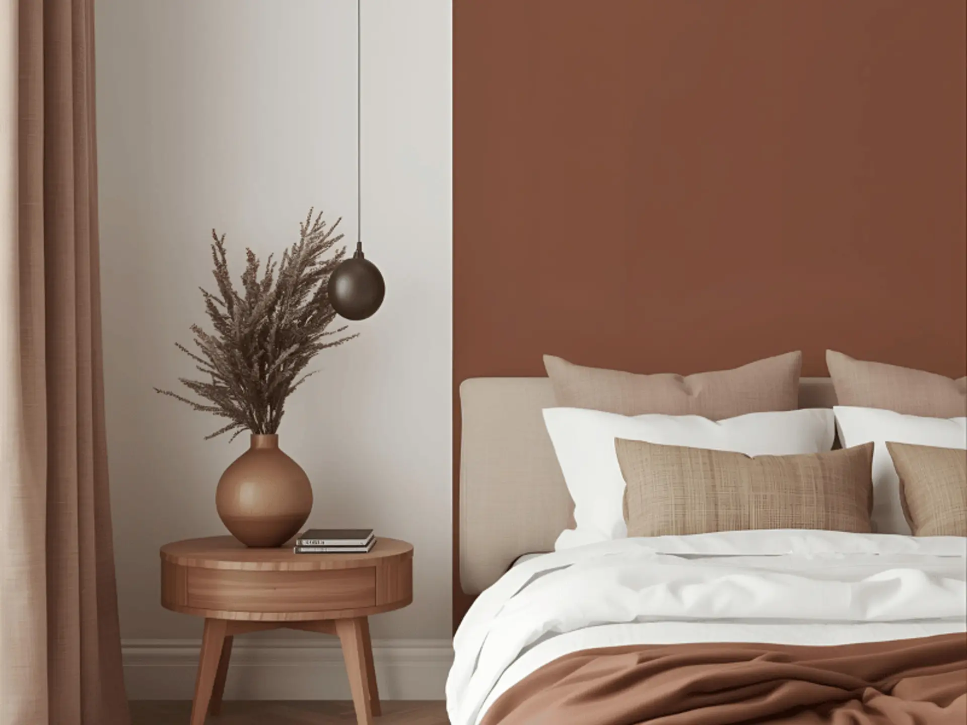 Yes. Coffee tones are naturally restful and help a room feel cocooned, so they suit bedrooms very well. Keep ceilings and trims lighter to avoid a heavy feel, and balance the depth with natural linens and warm lighting. For easy coffee colour bedroom ideas, try cocoa walls with warm white bedding, or espresso behind the headboard with beige curtains.