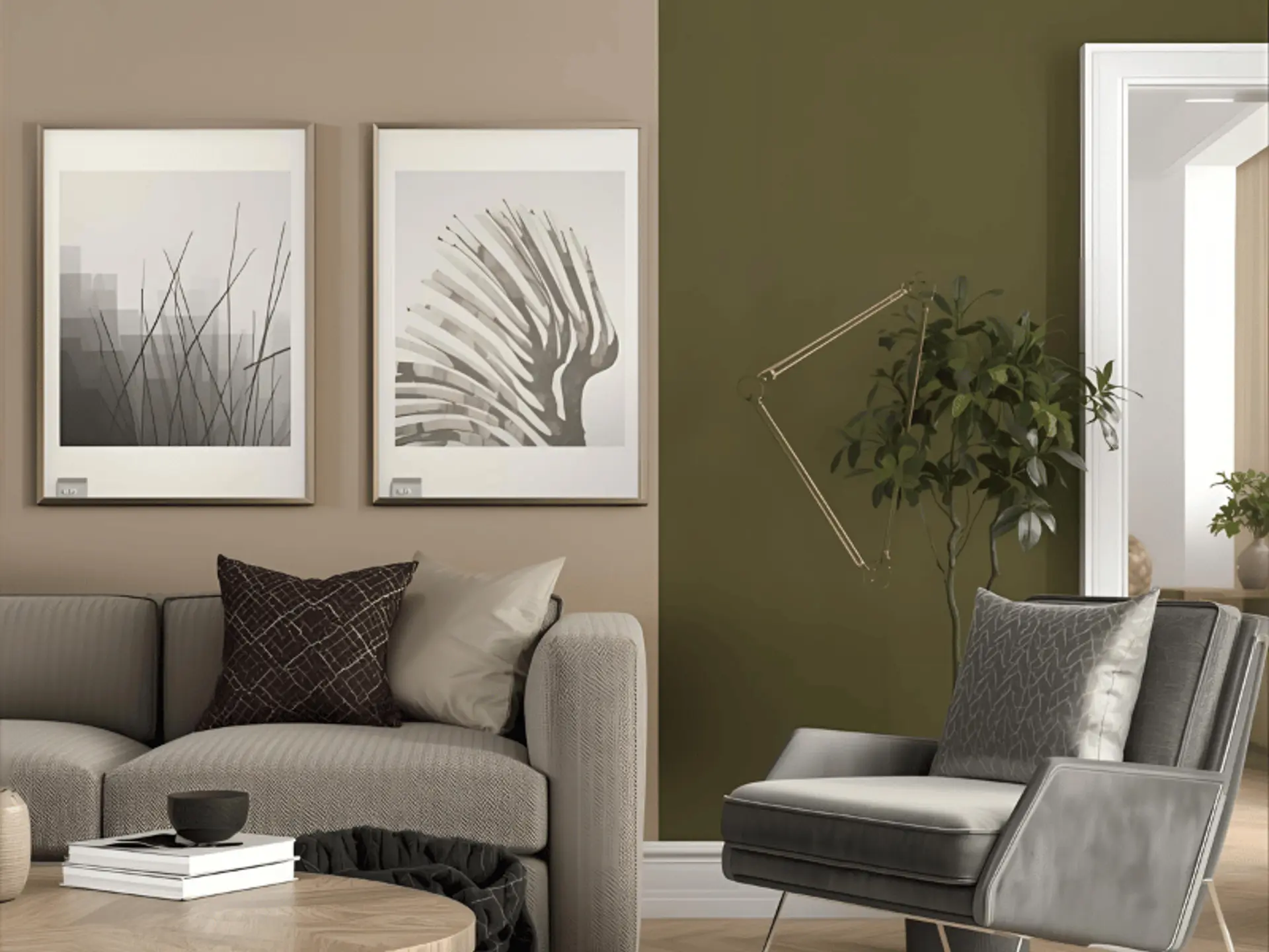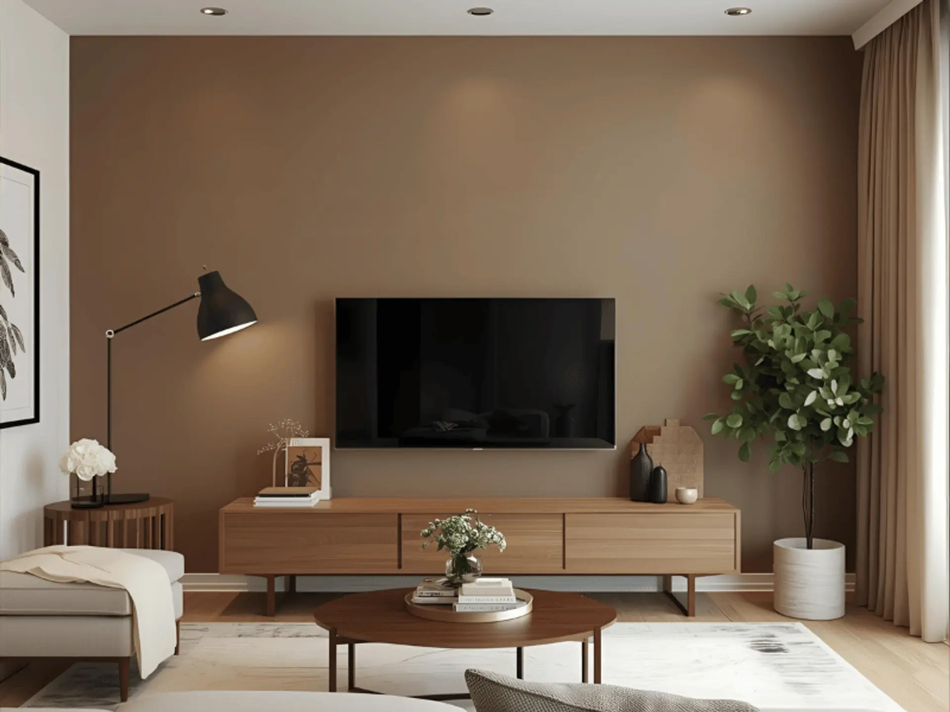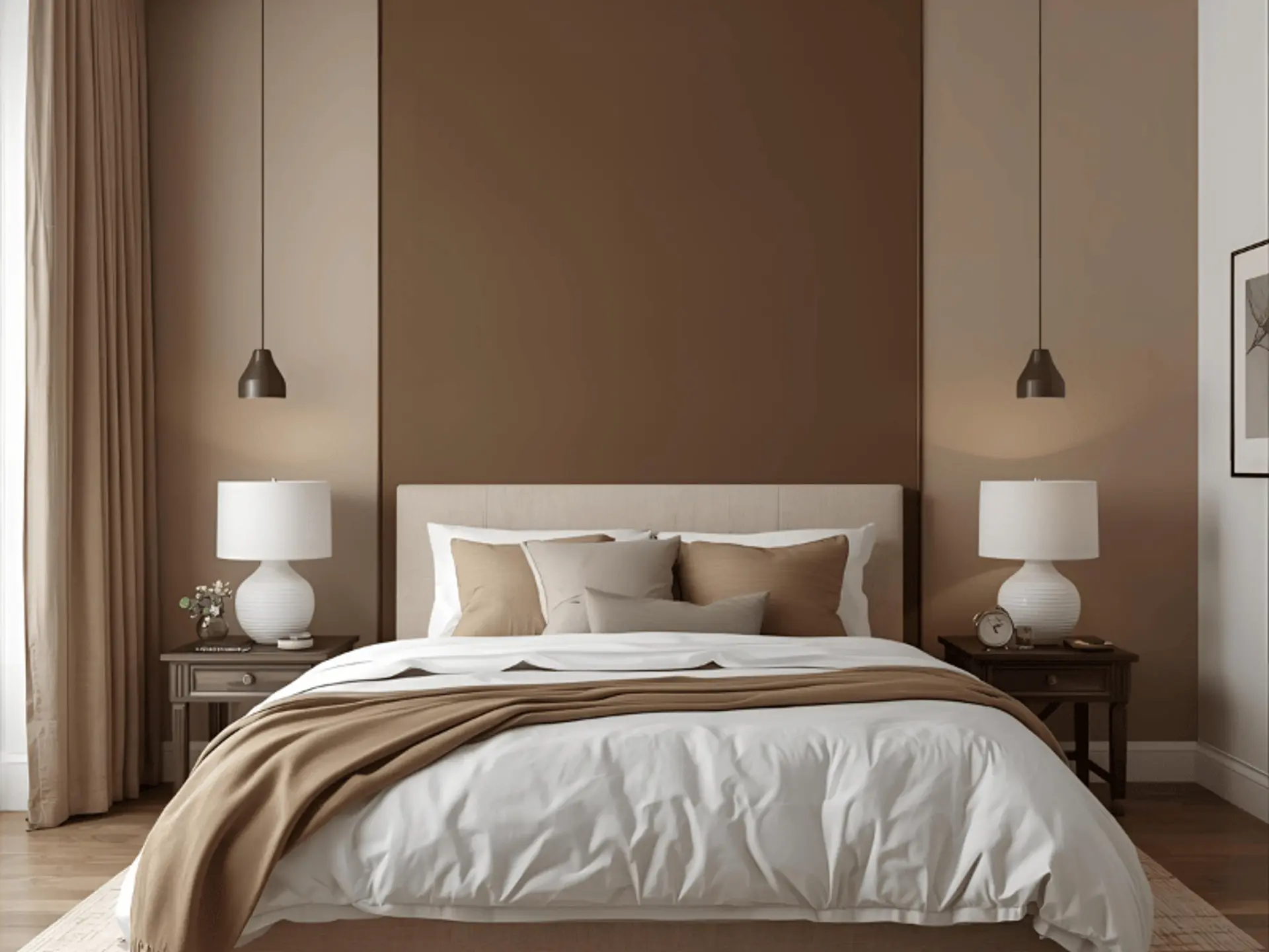 - Tip: Cream on large surfaces; coffee brown on furniture, frames, or a single feature wall.