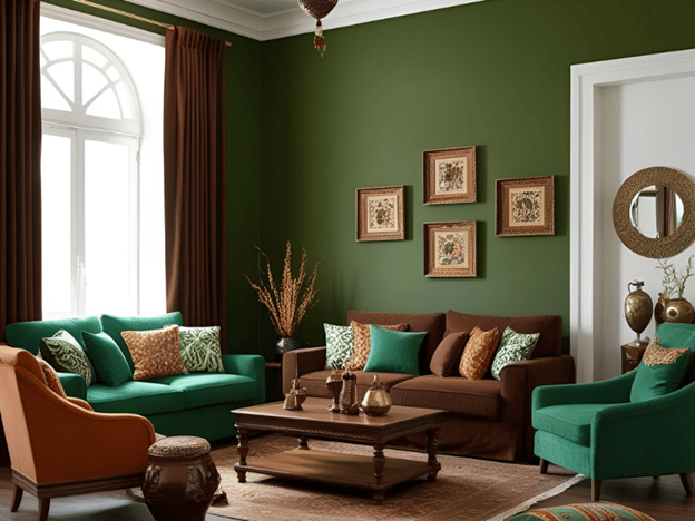 This nature-inspired colour combination for hall is perfect for homes that seek a rustic and earthy ambience. Forest green exudes richness, while brown provides a grounding effect.