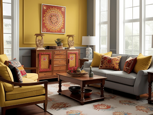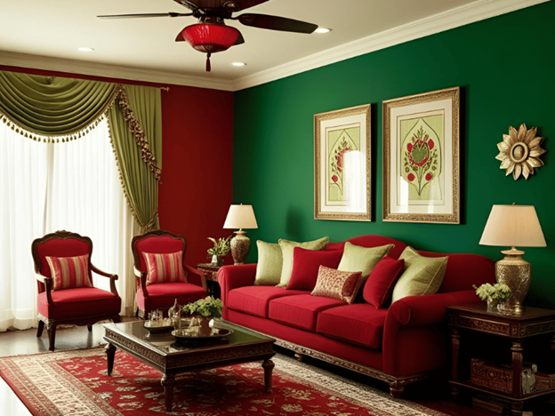 Traditional Indian interiors are vibrant and filled with personality. A royal colour combination for hall inspired by heritage and culture can make your space feel warm and welcoming.