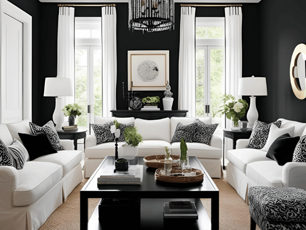 A timeless classic, this pairing blends contrast and elegance. The simple Indian hall colour combination of black and white offers a bold, modern appeal while ensuring a refined and sleek ambience.