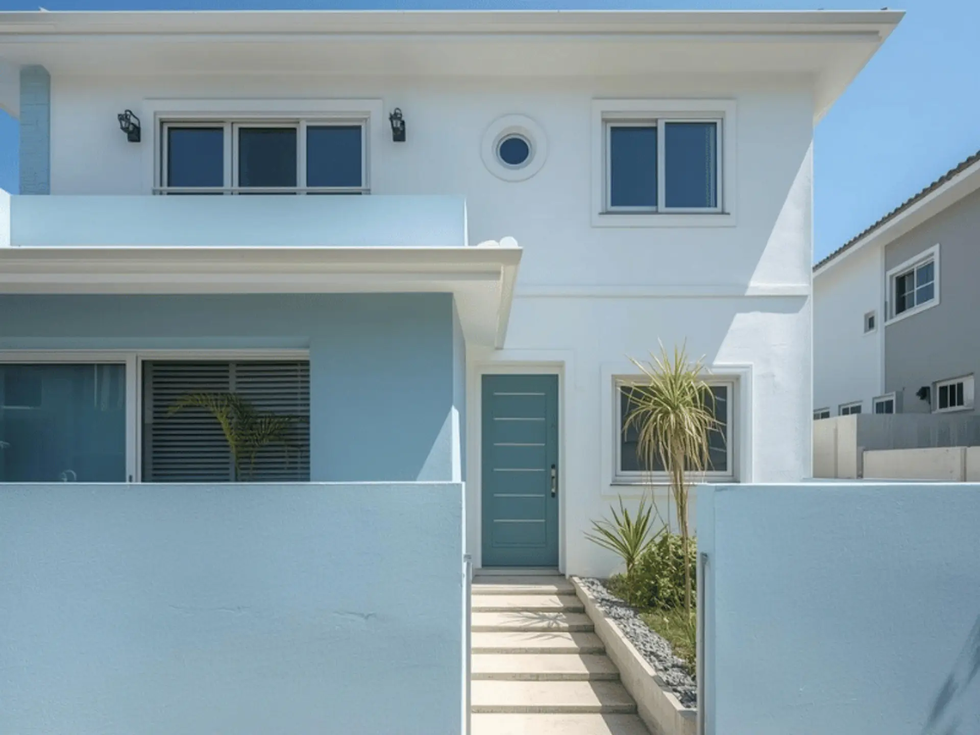 On humid days, this scheme makes a building look airy and light. It is perfect if you want house painting colours outside that echo beachside homes without going too loud.