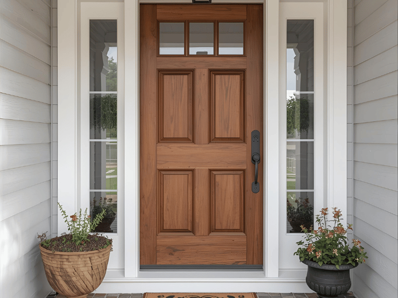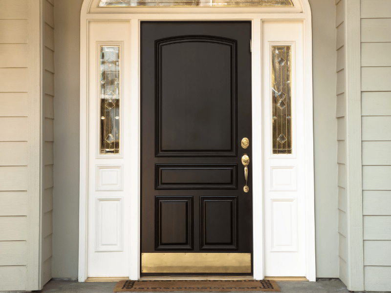 - Plan hardware and accessories: Handles, knockers, viewers, and hinges should share a finish. Chrome pairs with greys and blues. Brass warms up greens and browns. Black works with almost any shade. Consistency makes even a simple door feel considered. Also, consider following up with a guide to protect exterior wood.