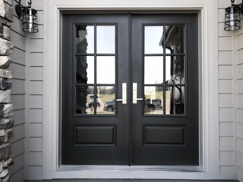 Matte black remains a top choice for front door contemporary design. It masks fingerprints better than high gloss and gives smart hardware room to shine. Choose a long vertical pull bar, a neat viewer, and a minimal letter plate, all in one metal family such as brushed steel. If security needs an outer grill, keep the bars slim and horizontal so the view remains open.
