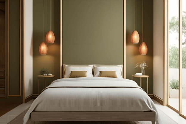 - Beige borders + Olive green walls – evoke an organic and calming atmosphere.