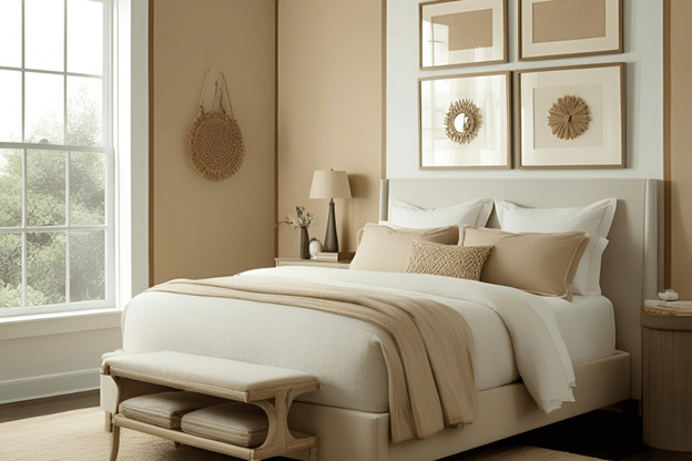 - Ash beige borders + Warm beige walls – gentle yet defined contrast