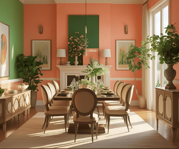 A Peach colour combination for wall with green adds an earthy, natural touch to any interior.