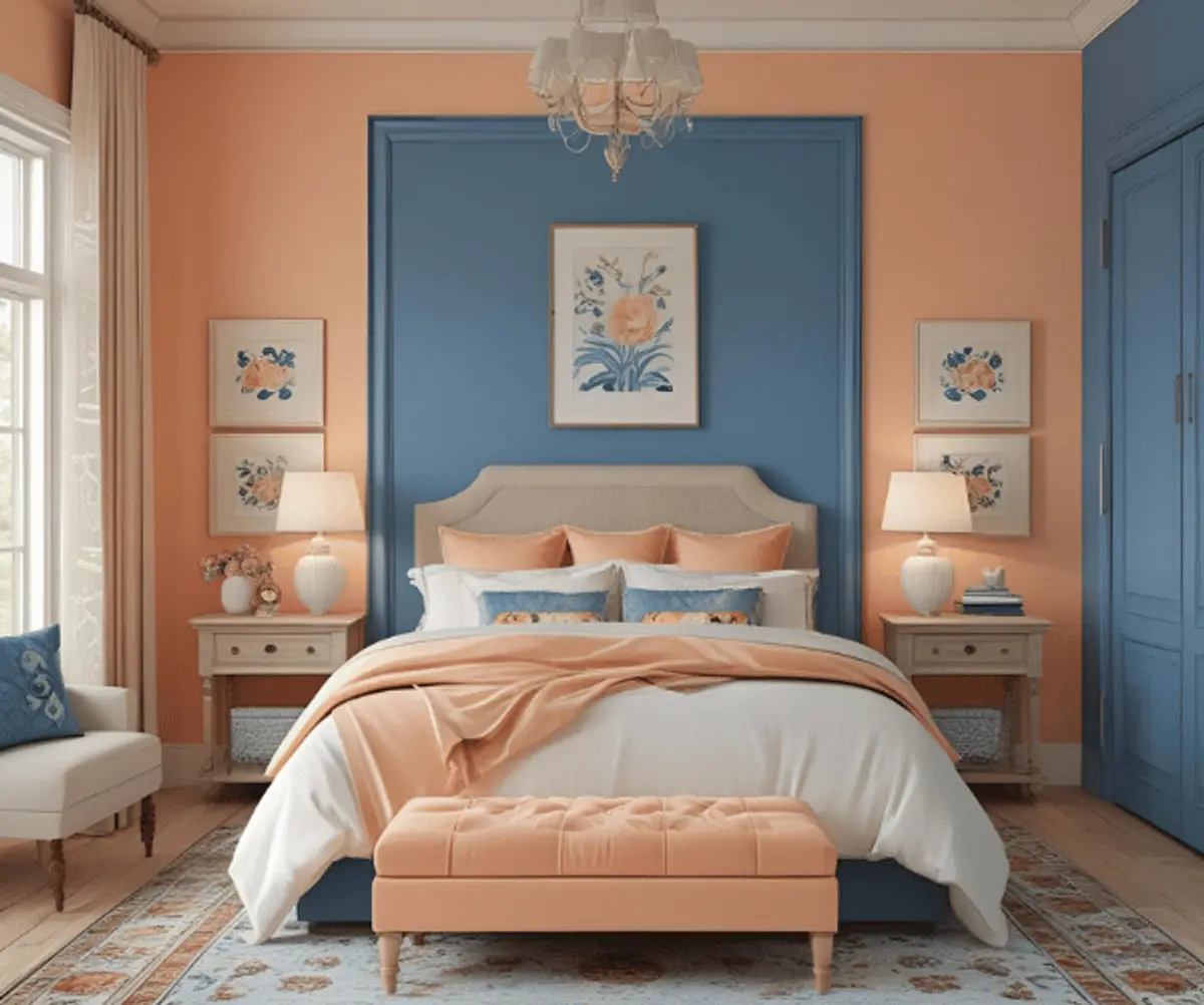 - Bedroom accent walls with a peach and coral merge