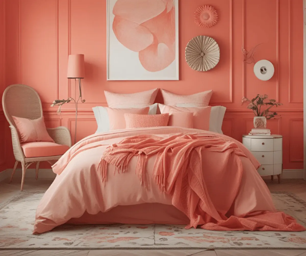 - Coral and peach fusion for bold interiors