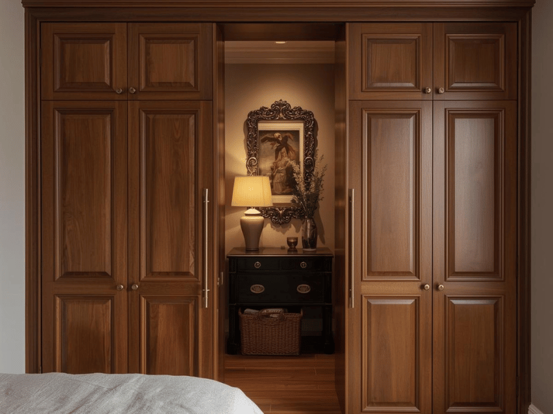A full-length mirror can function as a sleek hidden entry. It’s ideal for walk-in closets, makeup rooms, or storage, and suits bedroom secret rooms in houses where you want privacy without an extra visible door. It can lead to:
