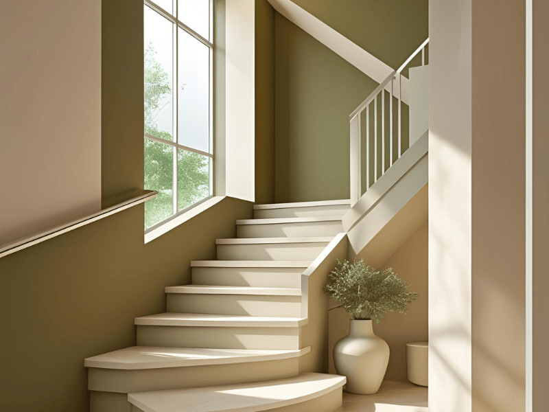 These staircase paint ideas work well with natural lighting and also complement wooden or glass stair railings. If you’re looking for low-maintenance yet stylish options, these shades are ideal.