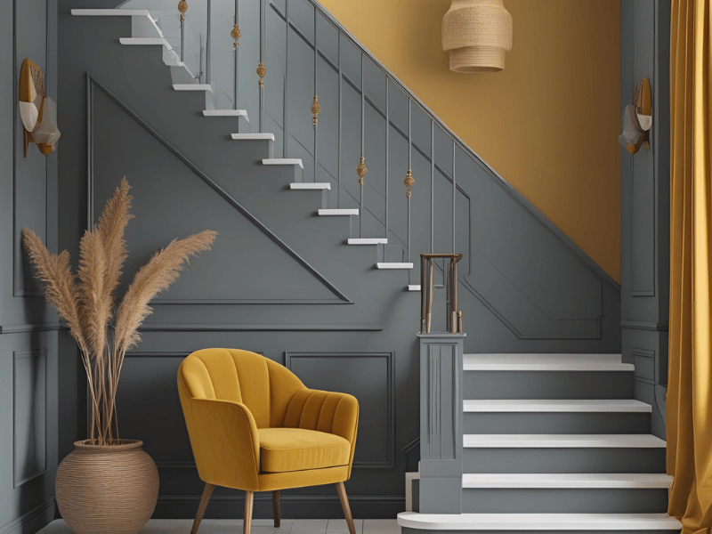 - Pop of Colour: Use a mostly neutral staircase with one wall in a bold colour like mustard, teal, or red.