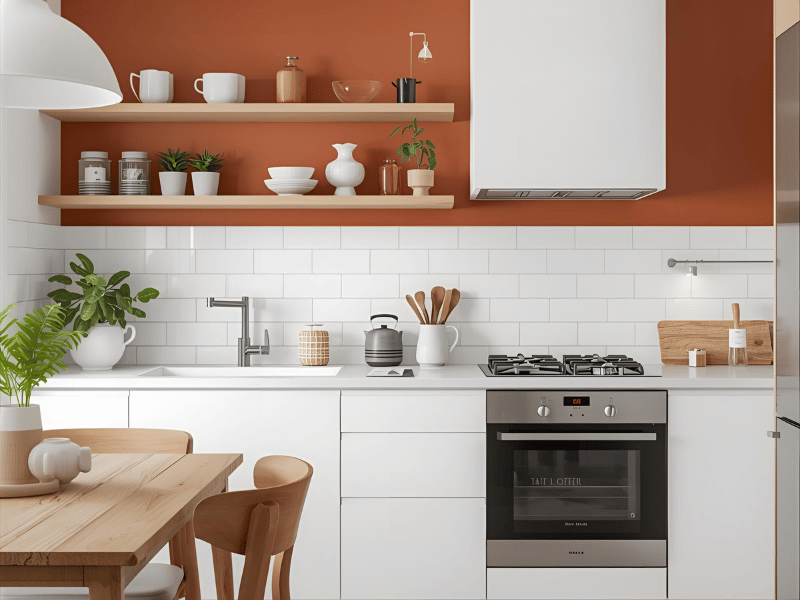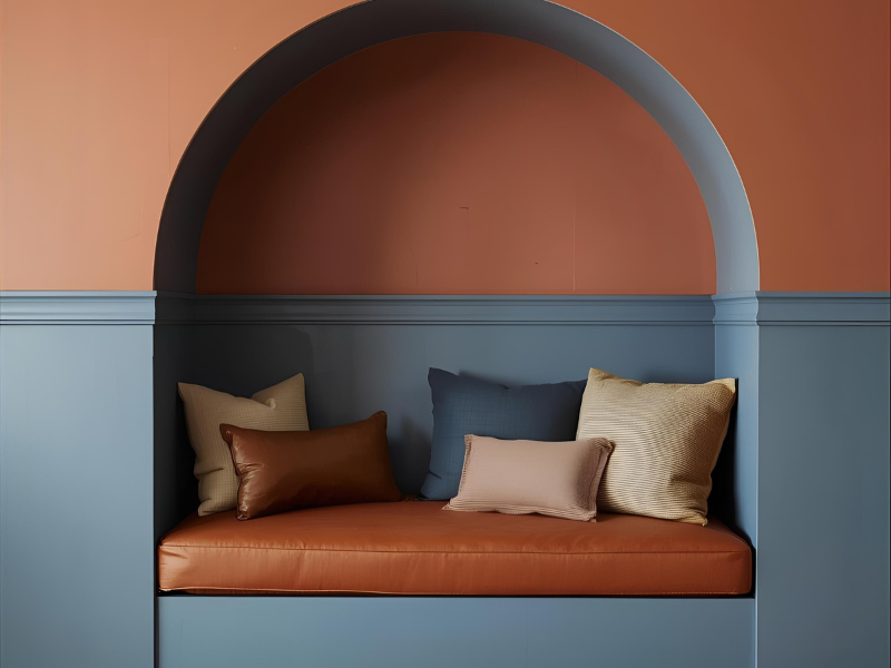 Rooms that echo nature help residents decompress after long days. Clay hues suggest soil, pottery, and warm stone, all of which feel familiar. In living areas, a balanced warm terracotta paint makes an open-plan space less stark and draws the eye to seating or shelving.
