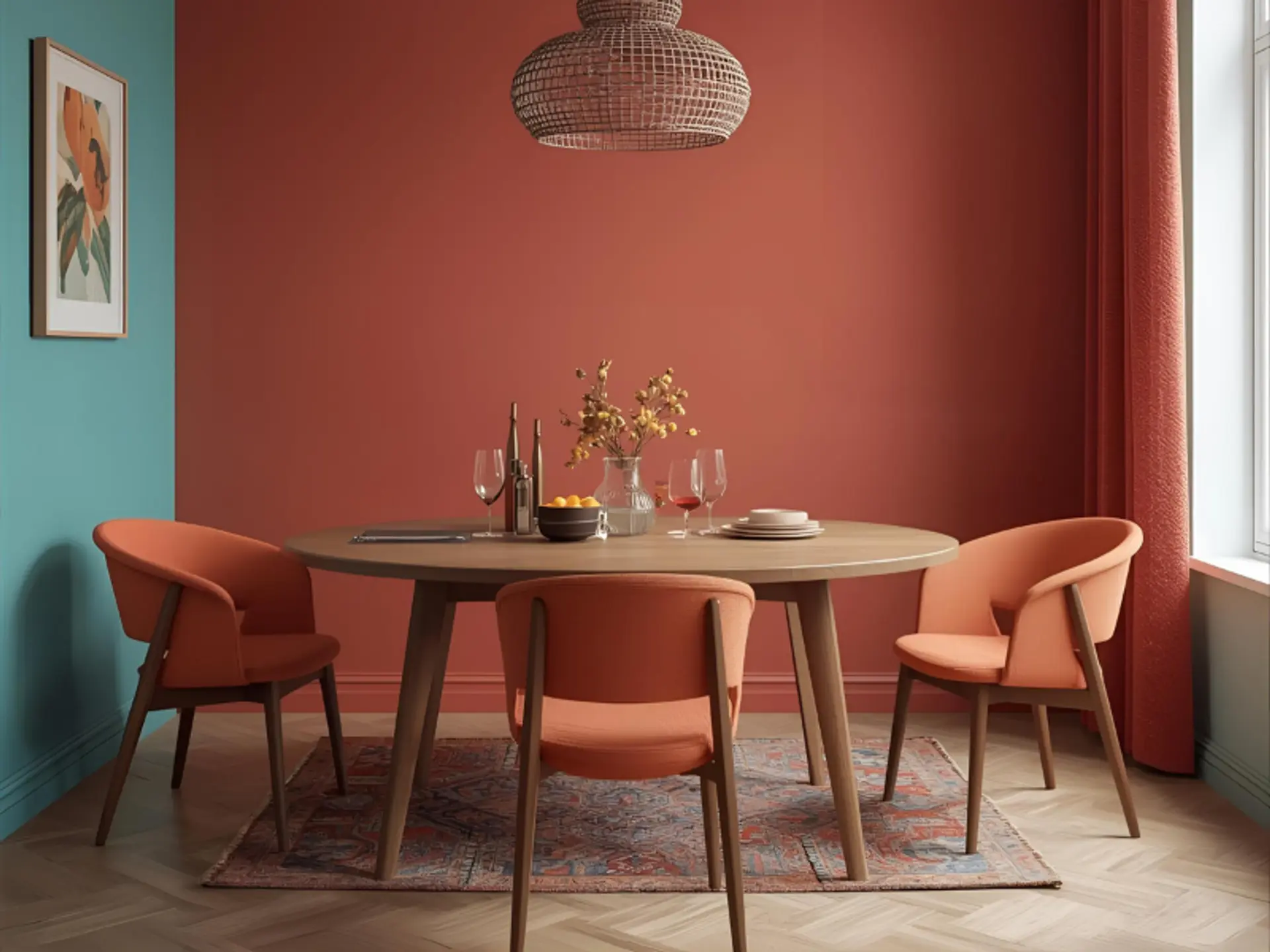 Thoughtful pairing matters more than drama. Test swatches on the actual wall, check them throughout the day, and keep furniture finishes in mind. Selecting one anchor, one supporting neutral, and a single accent usually produces a cohesive terracotta colour combination.